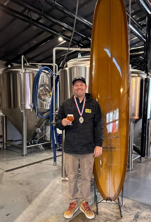 Los Molinos Head Brewer Jon Eckelberger holds his Silver Medal-winning Coast Molinos (a West Coast IPA). Los Molinos Beer Co. opened on April 16, 2022. San Clemente’s newest brewery is a “Community-Focused Micro Brewery that is committed to crafting the ideal beer for the perfect day in the most incredible location in California.”